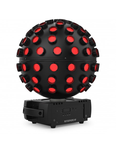 La Rotosphere HP de Chauvet DJ est une boule à facettes puissante équipée de deux LED quadricolores (RGBW et CMYO) pour des combinaisons de couleurs inédites. Cette configuration innovante garantit des couleurs pleines de vie qui peuvent transformer la pièce, que vous souhaitiez créer une ambiance de fête dynamique ou un cadre romantique.